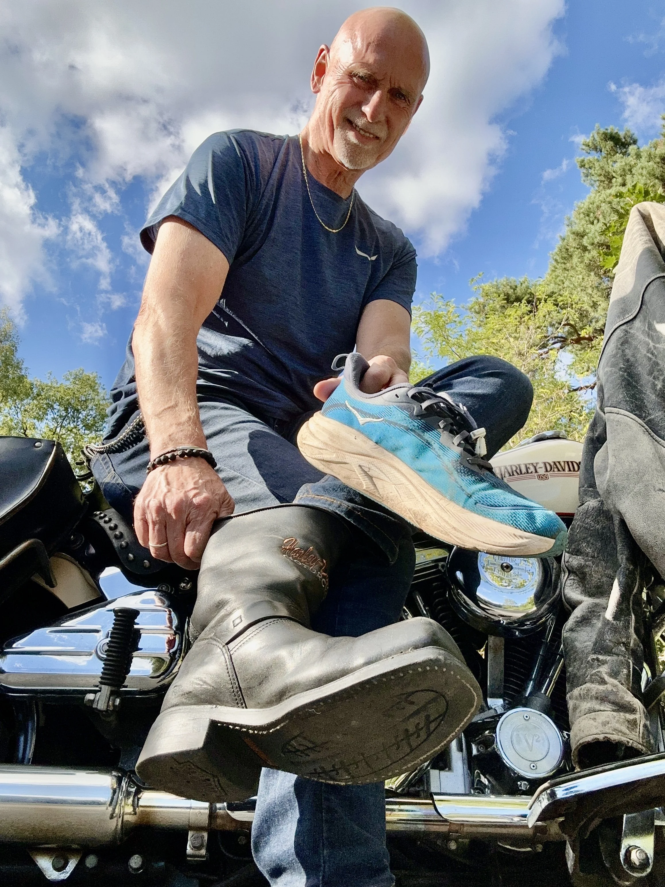 Ganz in Gedanken schreite ich auf dem sandigen Pfad Richtung Parkplatz zurück. Ich höre Stimmen. Jetzt kommen mir doch ein paar Leute entgegen. Die genießen vielleicht ihren Feierabend und wollen entspannen. Wälder sind dafür das perfekte Medium. Und wenn noch ein kleiner Bach die Idylle ergänzt: besser geht’s kaum. Ich entbiete einen Gruß, er wird freundlich erwidert. Das Leben kann schön sein, wenn wir die kleinen Wunder wahrnehmen. Momente wie ein unerwartetes Lächeln. Sie zu bewahren, das ist die Kunst. Glücklich und zufrieden erreiche den Parkplatz. Bis auf meine Harley ist er leer. Ich ziehe mir die Stiefel wieder an. Zum Motorradfahren sind sie bestens geeignet, zum Laufen nicht, überhaupt nicht.