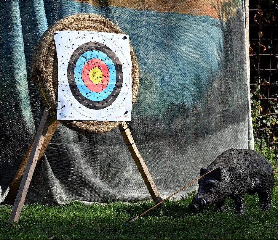 Als Gaukler bezeichnete man im Mittelalter Unterhaltungskünstler verschiedener Art wie Artisten, Zauberer, Clowns und Komiker, aber auch Possenreißer, Taschenspieler oder Tierschausteller. Letztere gibt es hier glücklicherweise nicht; obwohl ich beim Bogenschießen zweimal hinschauen muss, ob der Keiler nicht doch echt ist.