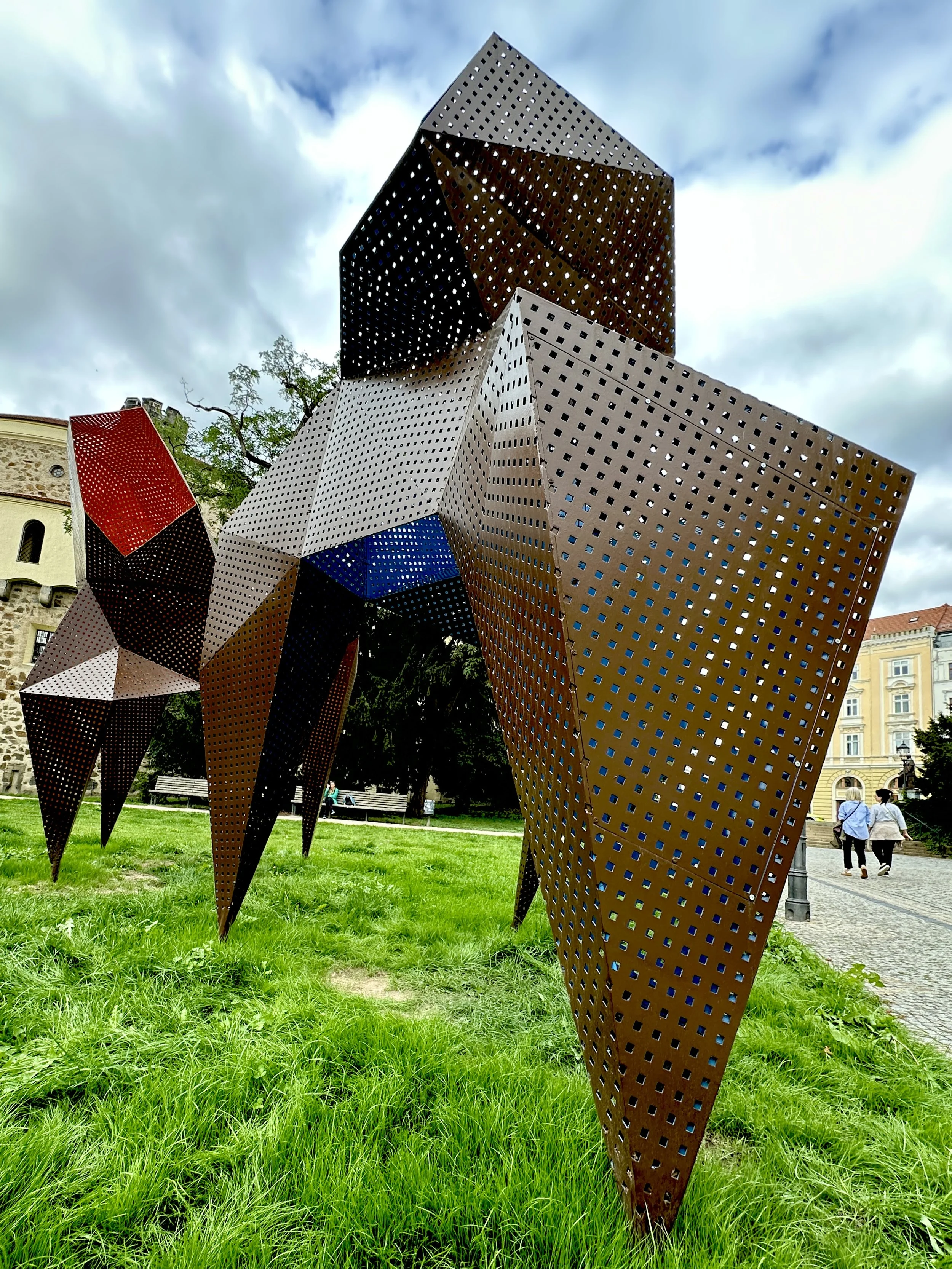 Er stellt sich vor: „Ich bin der schillernde Jimi – wie Hendrix. Meine Haare sind seit 1996 im fast ungebremsten Wachstum. Letztlich musste ich sie mal kürzen, bin dauernd draufgetreten.“ Ein Existenzialist? Vielleicht. Auf jeden Fall herrlich schräg, herrlich Görlitz. Gleich dahinter liegt der Kaisertrutz, früher eine von 32 Basteien. Davor ein Kunstwerk namens „Die Herde“ von Piotr Wesolowski. Inspirierend, aber auch ein wenig seltsam.