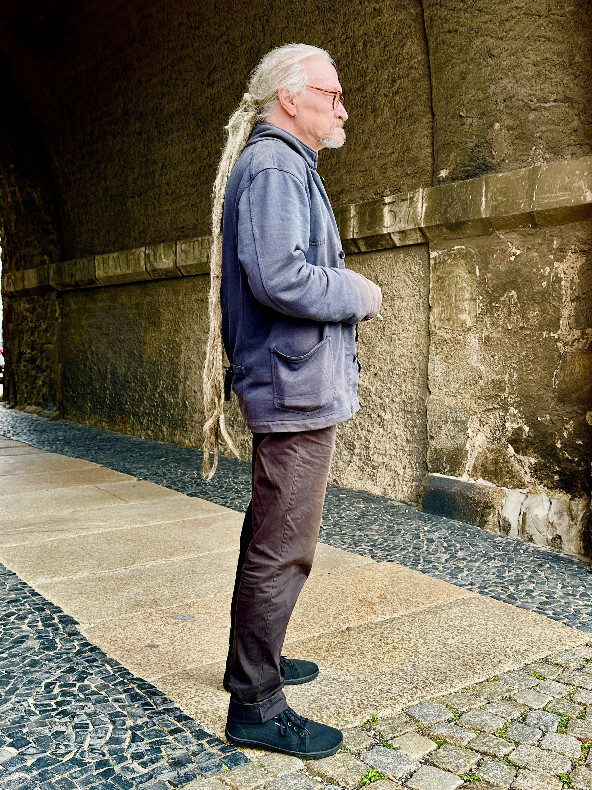 Wir starten am Reichenbacher Turm – 51 Meter hoch, einst Teil der Stadtbefestigung. Am Treppenaufgang steht ein Typ mit endloser Mähne.