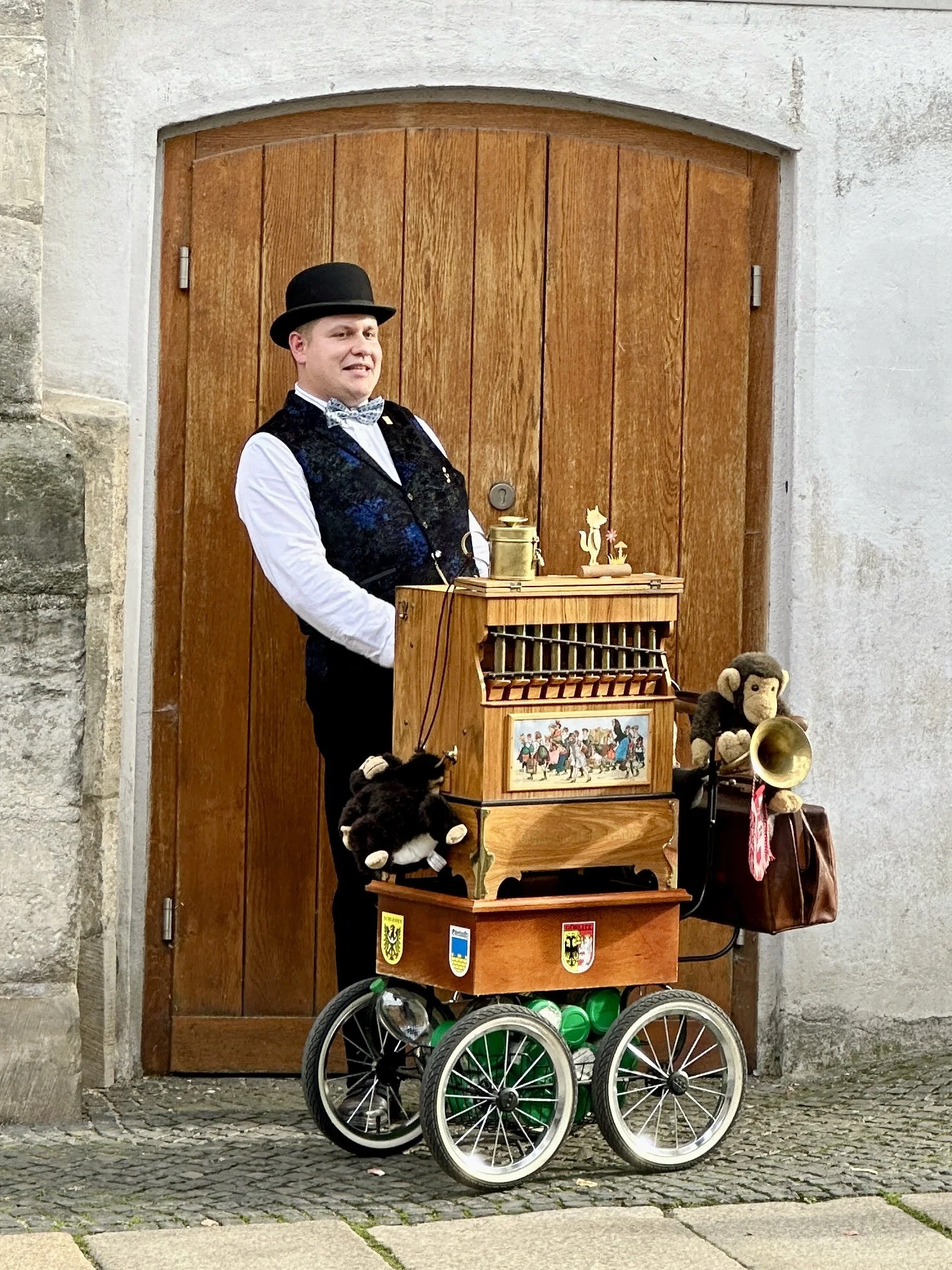 Auf einmal tönt es über den Platz: „Ich hab so Heimweh nach’m Kurfürstendamm!“ Ein Leierkastenmann mit Berliner Schnauze (eigentlich städtischer Bibliothekar) sorgt für Gänsehaut-Feeling. Die Drehorgel hat einen guten Sound und Pierre Pilz eine angenehme Stimme.