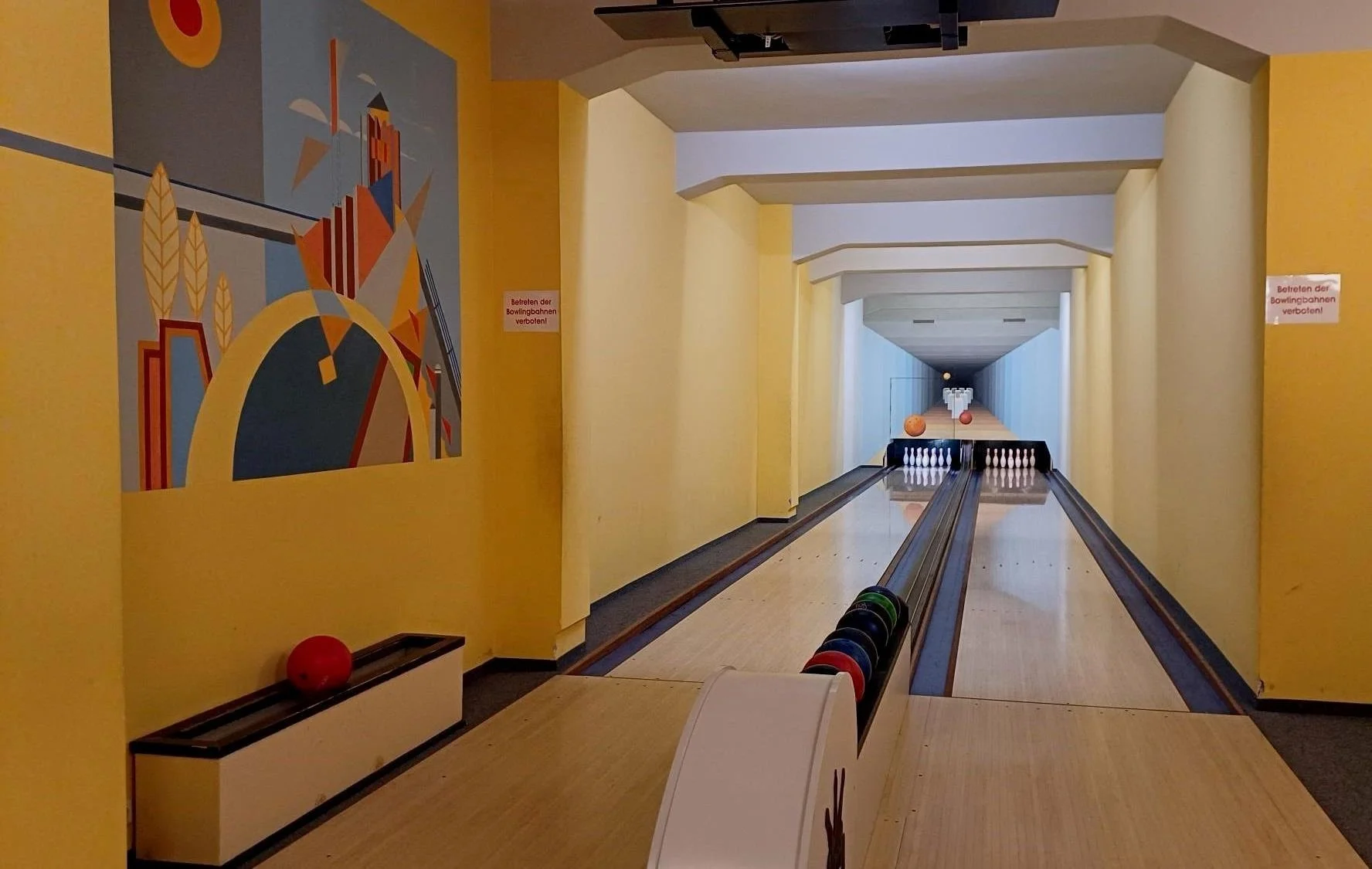 Neben den Unterkünften gibt es in der ersten Etage eine Sauna und in der zweiten ein Billardzimmer sowie eine Bowlingbahn. So fein!