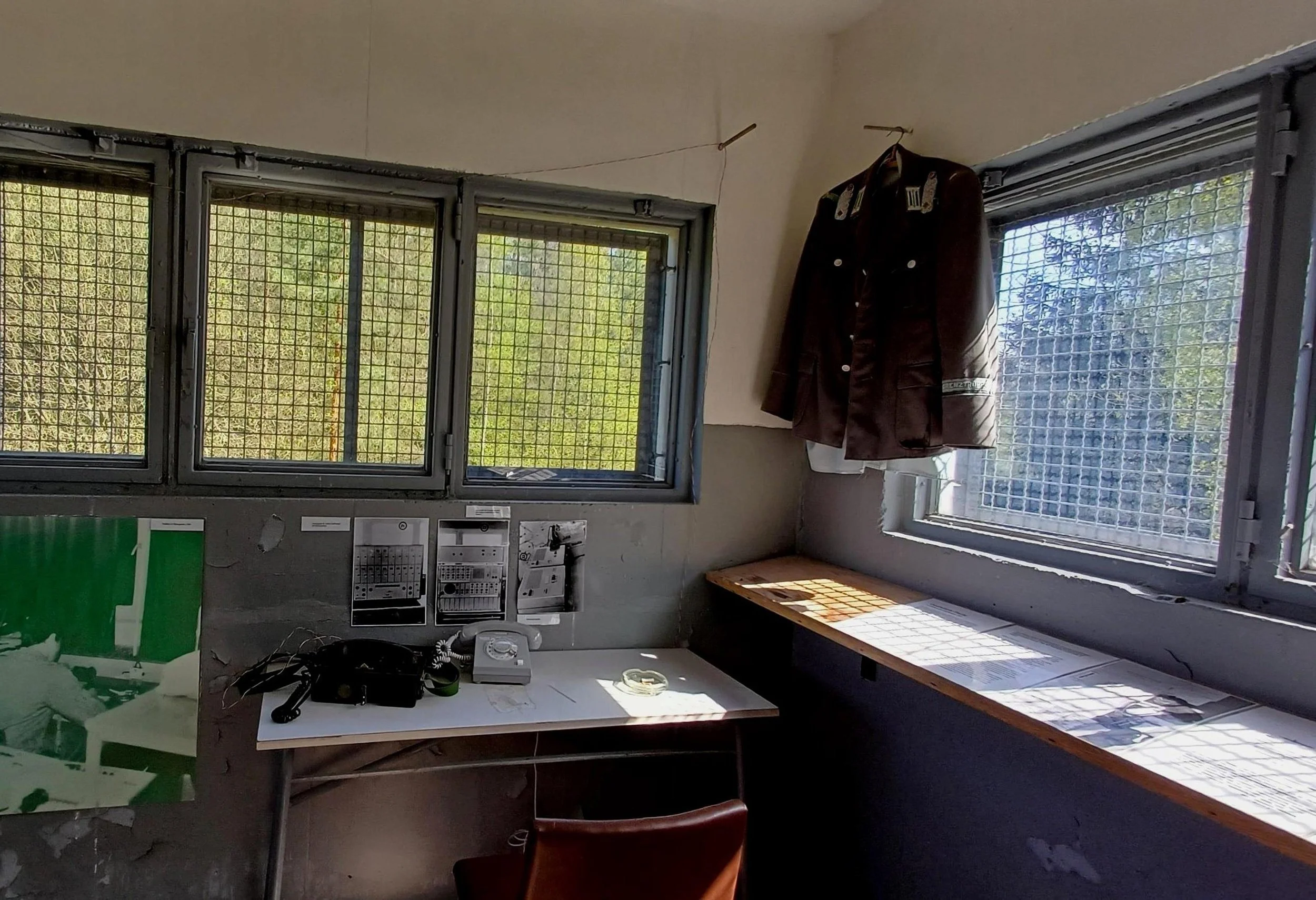 Wie schön, dass der einheimische Medizintechnik-Unternehmer Dieter Nagel im Jahr 2003 zur Versteigerung des Hauses nach Berlin fuhr und den Zuschlag bekam. In jahrelanger Arbeit und mit viel Liebe zum Detail haben er und seine Frau das Haus rekonstruiert. Wir lauschen seinen Ausführungen auf der Sonnen-Terrasse und im angebauten Café-Pavillon. Für die historisch korrekte Restaurierung des Café-Pavillons erhielt das Ehepaar Nagel im Jahr 2005 den Deutschen Fassadenpreis. Der zweigeschossige, verglaste Anbau mit Flachdach, der auf einem Stahlbetonskelett über den Hang hinausgebaut ist, bietet einen schönen Blick hinunter ins Loquitztal. Ich liebe diese strenge, reduzierte Bauhaus-Geometrie! In den kalten Jahreszeiten werden der Pavillon und seine Anbauten eher für praktische Zwecke verwendet. Makaber liest sich im Anbau eine Inschrift aus DDR-Zeiten: „Sobald der Schütze im Anschlag ist, darf der Stand nicht betreten werden.“