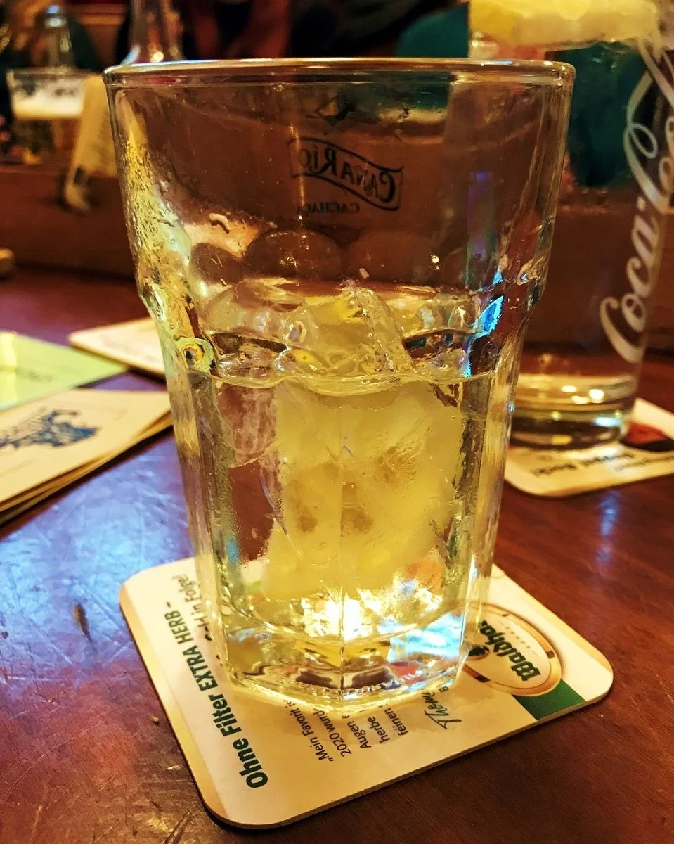 Nach 20 Minuten kriecht die Kälte in die Knochen und die Atmosphäre eines Frosta-Kühlhauses in den Vordergrund. Mein zweites Getränk kann das auch nicht retten. Das liegt aber an mir: ich bestelle einen Vodka mit Nuss-Nougat-Geschmack. Wer bitte stellt so etwas her? Und wer bestellt sich so etwas? Wenig später stehe ich wieder im lauen Winter, oder ist es ein kalter Sommer und stelle fest: mmhh, naja, geht so.