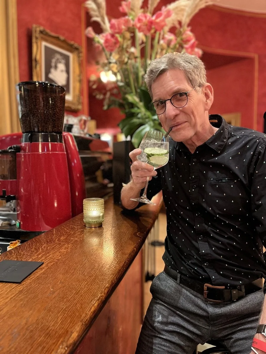 Geboostert und getestet stimme ich mich an der Bar mit meinem Lieblingsgetränk Gin-Tonic auf die gefühlvolle Entführung der Sinne in die leichte Cabaret-Unterhaltung ein.