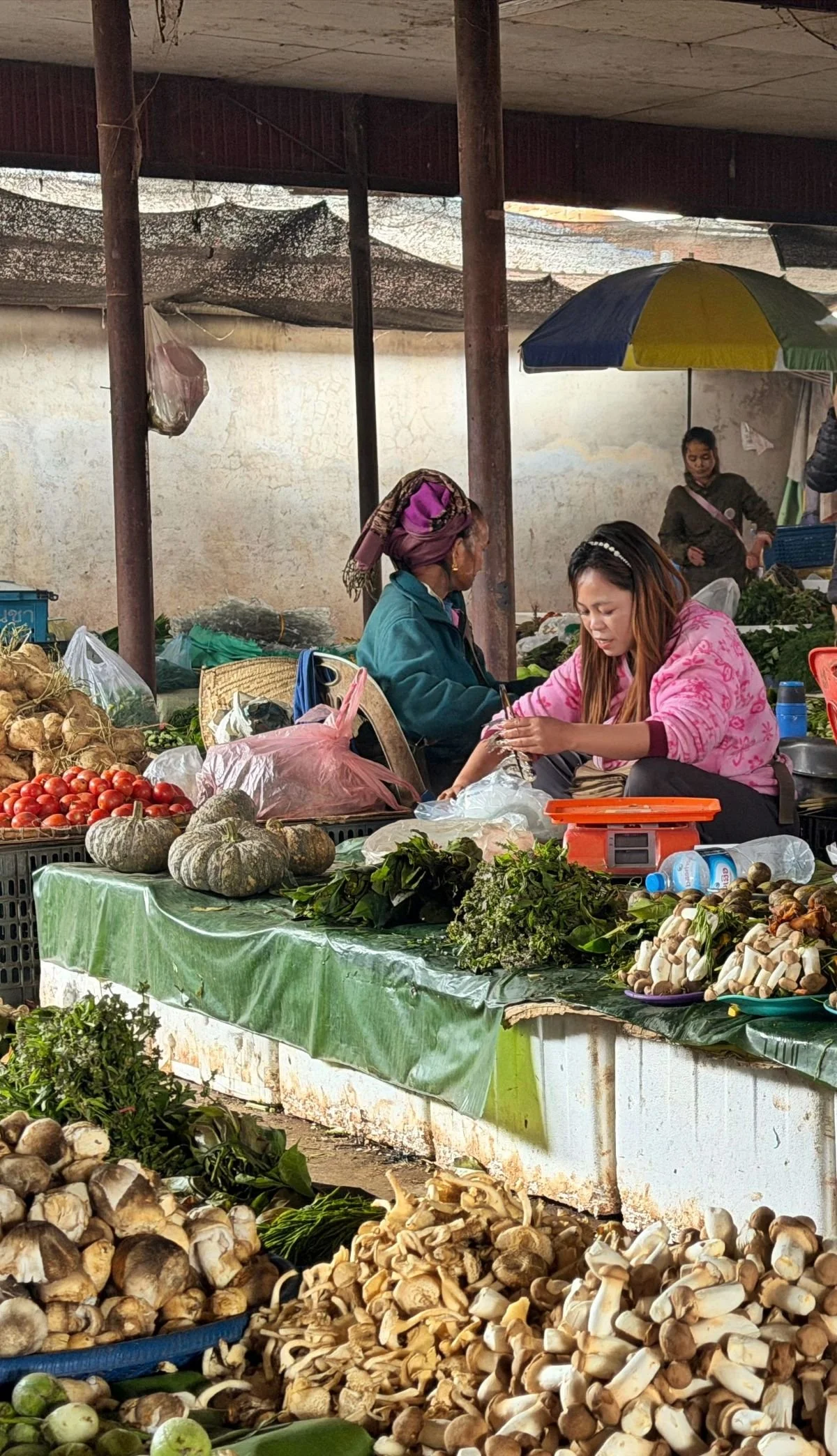 Der Einkaufstopp auf dem Morgenmarkt gehört dazu. Pilzberge, Kräuter und Kürbisse stapeln sich zwischen den Ständen.