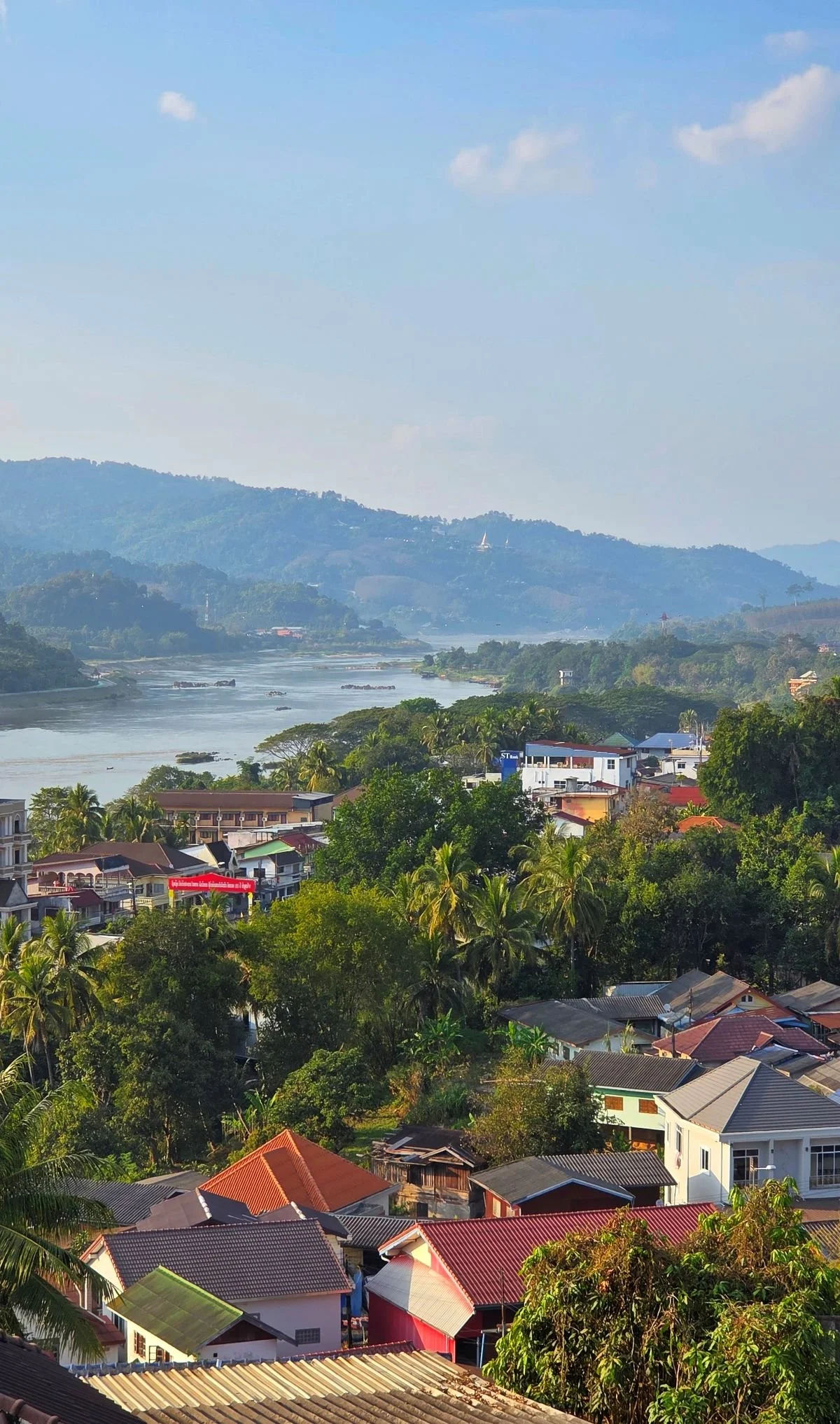 Zum Beine auslockern darf es ein Aufstieg zum Sonnenuntergang sein. Der Sam Nang View Point liefert steile Stufen und Puls, aber die Belastung währt nur 20 Minuten und auf der Plattform steigt der Puls nur wegen des Ausblicks auf das Städtchen am Nam Ou.