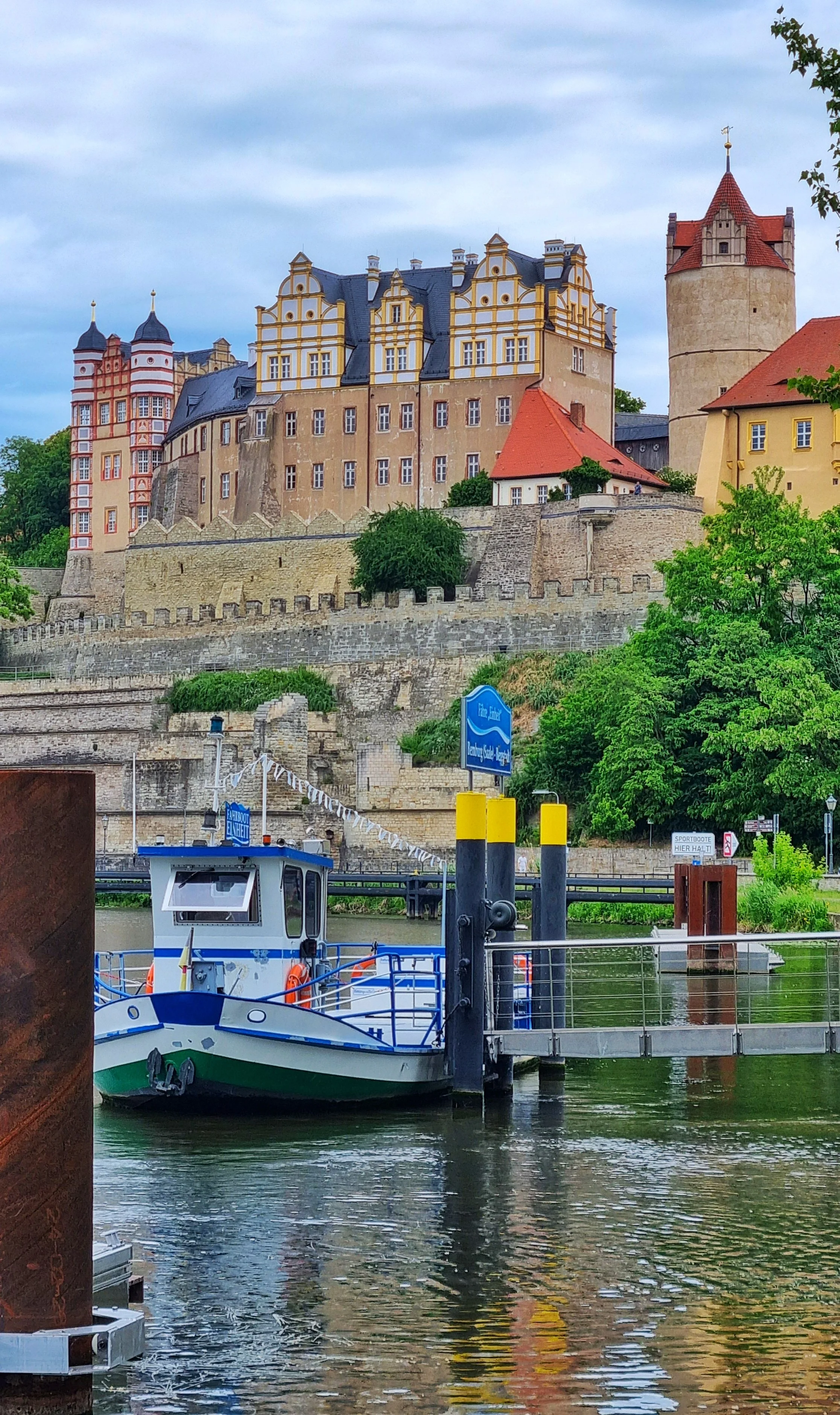 Wir wechseln nun unsere Flussbegleitung und haben jetzt die deutlich breitere Saale an unserer Seite. Bei einem kurzen Abstecher nach Weißenfels cruisen wir über den Marktplatz vor der Marienkirche. Viel mehr scheint hier aber auch nicht für Bewunderung zu sorgen.