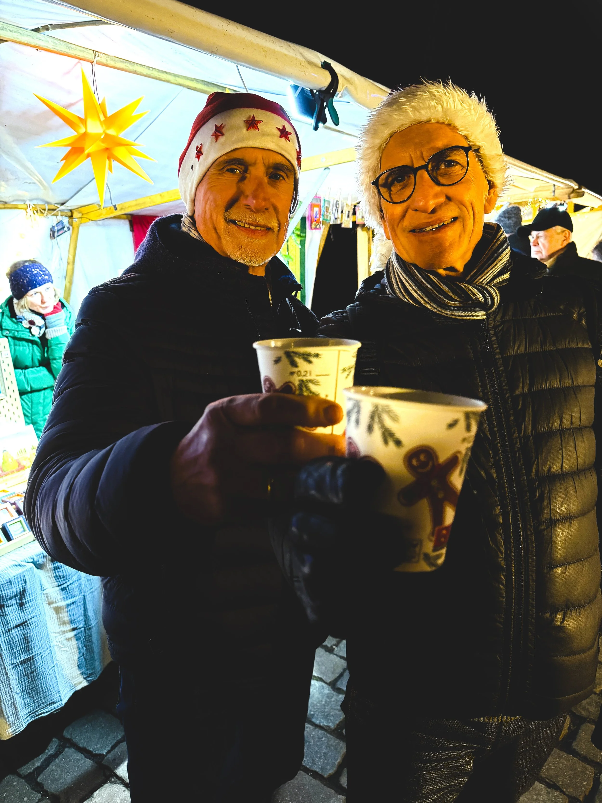 Natürlich dürfen auf einem Weihnachtsmarkt auch die kulinarischen Genüsse nicht fehlen. Glühwein, Käsespätzle und – wie man munkelt – die besten Waffeln Berlins locken die Besucher. Die Schlange vor den Spätzle ist schier endlos, die vor dem Glühwein erfreulich überschaubar. Die Entscheidung fällt daher leicht: Heißgetränk. Und dieser Glühwein ist gut, sehr gut. Selbstgemacht, tiefrot, dampfend und mit genau der richtigen Mischung aus Weihnachtsgewürzen und „Ach komm, einer geht noch“.